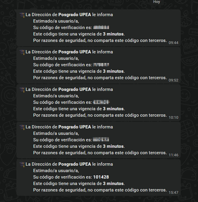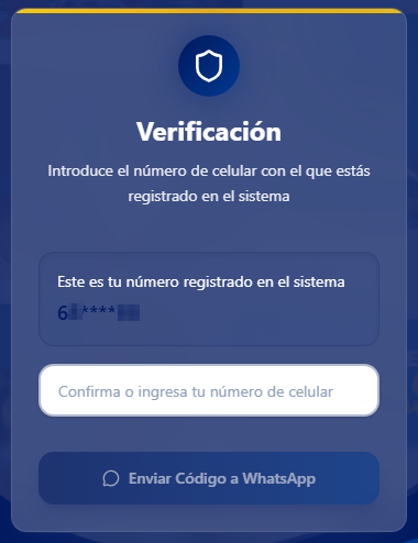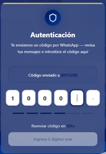 Recibirá un código de verificación OTP (Contraseña de un solo uso) por WhatsApp en su celular registrado.