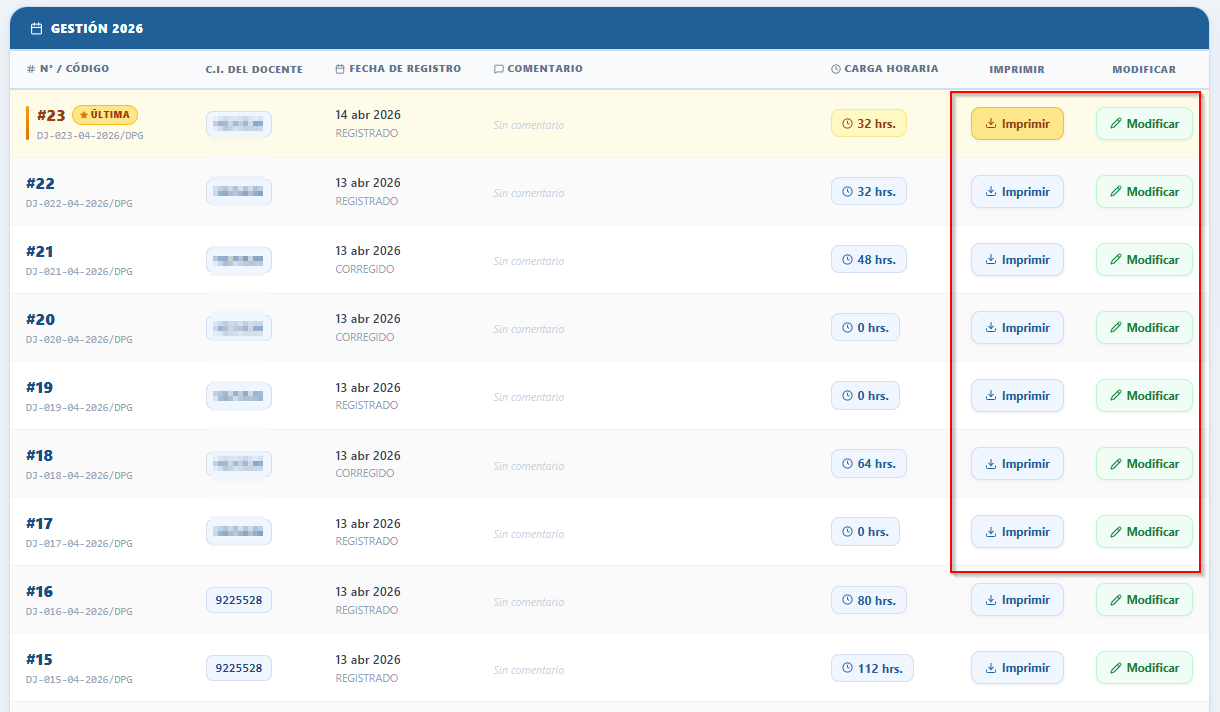 - Código único de declaración (ej. DJ-023-04-2026/DPG)