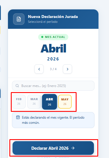 Complete y envíe la declaración jurada del mes disponible.
